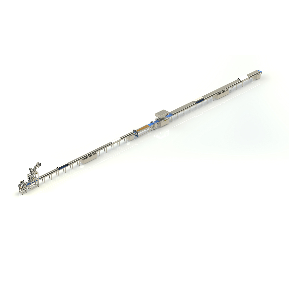 Hat; ham madde hazırlama ve pişirme ünitesi, karıştırma sistemi, kütle aktarım modülü, form verme sistemi, bantlı taşıma hatları, soğutma bölümü ve hassas kesim ünitesinden oluşur. Tüm süreçler otomasyon destekli olarak kontrol edilir ve üretim parametreleri hassas şekilde ayarlanabilir.